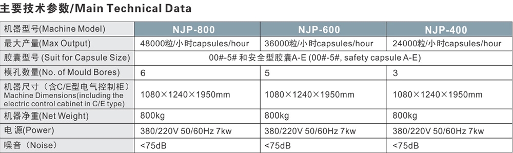 NJP-800/600/400A、C、E series FullY automatic capsule filling machine